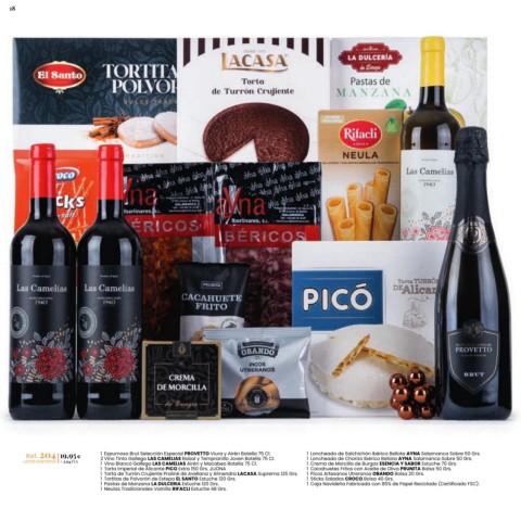 Ref. 204 19,95 € 2 Vino Tinto Gallego LAS CAMELIAS Bobal y Tempranillo Joven Botella 75 Cl. 1 Loncheado de Chorizo Ibérico Bellota AYNA Salamanca Sobre 50 Grs.